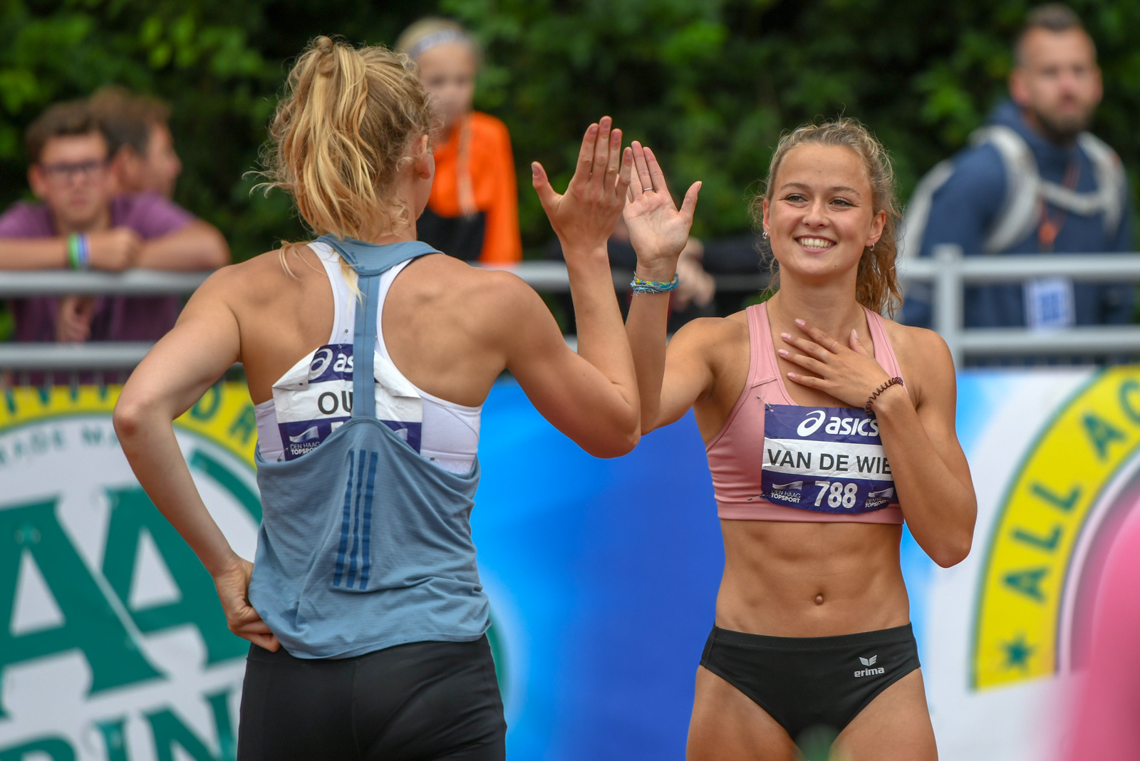 Op de meerkamp bij de vrouwen bleef het tot het laatste onderdeel razend spannend. Anne van de Wiel (AV Sprint) mocht niet meer dan zeven seconden verliezen ten opzichte van Michelle Oud (AV Zaanland) tijdens de afsluitende 800 meter. Deze voorsprong verdedigde ze met verve: ze verloor maar twee seconden op de 800 meter en dit was goed genoeg voor de gouden plak. Met een puntentotaal van 5712 punten stelde Anne van de Wiel de titel veilig. “Ik wist dat ik vandaag zo dicht mogelijk bij mijn persoonlijke records moest scoren om een podiumplaats te winnen. Dat ik nu goud pak met vandaag drie persoonlijke records is geweldig!”, vertelde een uitgeputte Anne van de Wiel vlak na de 800 meter. Het zilver was voor Michelle Oud met een score van 5644 punten. Het brons ging naar de tweelingzus en de Nederlands Kampioen van vorig jaar: Myke van de Wiel. Zij scoorde een puntentotaal van 5598.