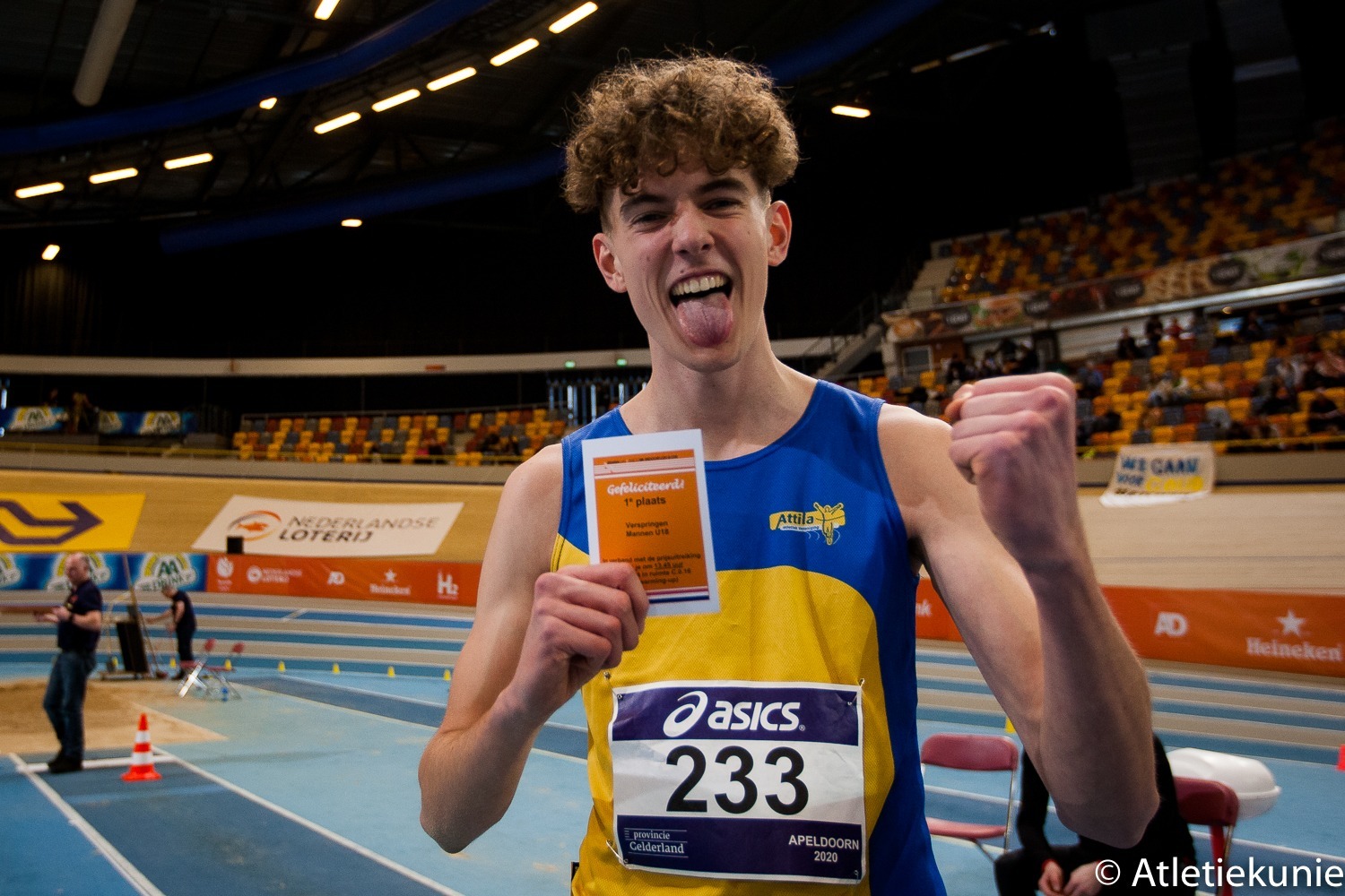 Ondertussen besloot Femke Jonker het hinkstapspringen bij de meisjes U18 in haar eerste twee pogingen al volledig in het slot te gooien met afstanden van respectievelijk 11,82m en 11,90m. De atlete van AV Hera werd in haar volgende pogingen niet meer bedreigt door haar concurrentes waardoor het goud haar niet meer kon ontgaan.