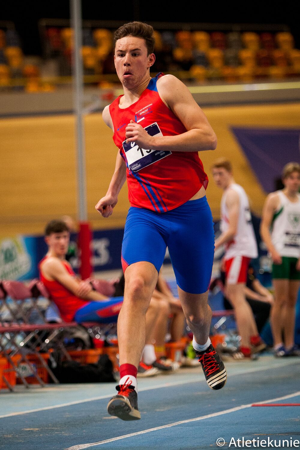 Bij het verspringen jongens U18 was het direct raak. Jonathan Pronk schoot uit zijn slof en vloog naar een afstand van 7.01 meter. Hiermee behaalde hij de limiet voor de EK U18 later dit jaar in Rieti (Italië). De wedstrijd leek in het slot te zitten tot aan de vijfde poging. In deze ronde haalde enkele atleten flink uit. Onder andere Finn de Graaf was een van de atleten die voor een uitschieter zorgde. In zijn vijfde poging sprong hij al naar een PR van 6.93 meter, dit resulteerde op dat moment van de wedstrijd in een tweede plaats. Echter deed hij er in zijn laatste en ultieme poging nog een schepje bovenop. Hij brak namelijk opnieuw zijn PR en slechtte de 7 meter barrière met een sprong van 7.04 meter. Hiermee kroonde hij zich in een spannende finale tot Nederlands kampioen verspringen.