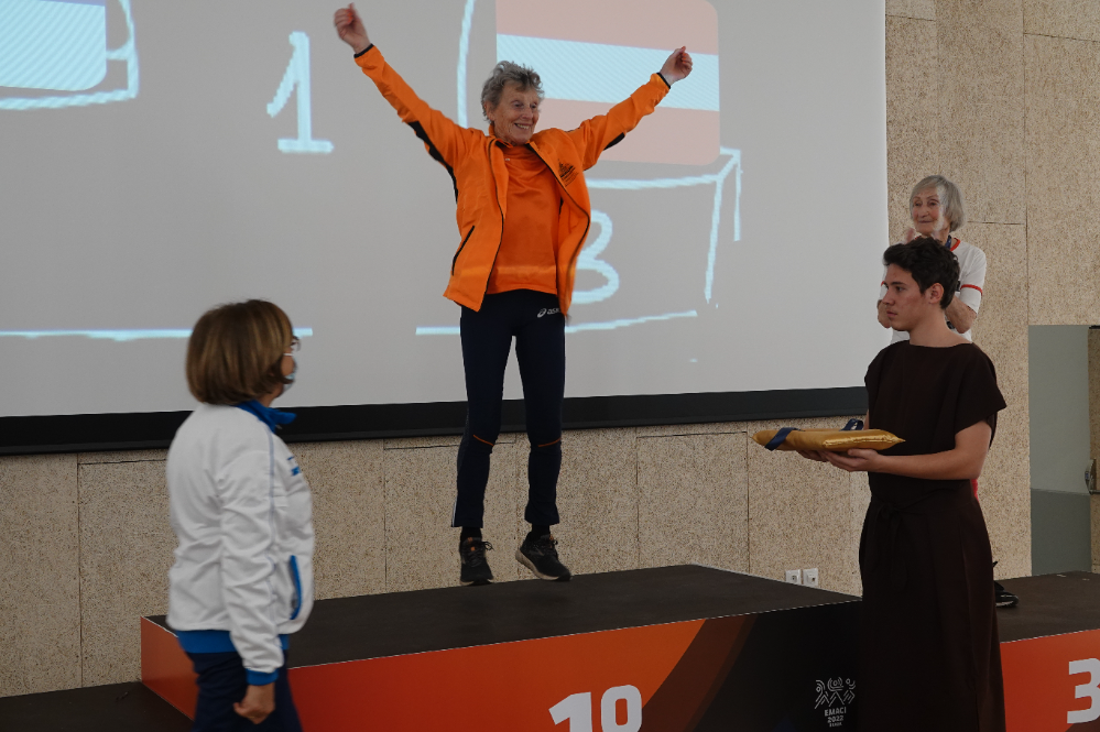 Een dag waarop alles klopte bij hoogspringen. In ieder geval bij Rietje Dijkman, Anja Akkerman en Linda van Berkel. Rietje Dijkman (V80) pakte haar tweede gouden medaille op dit EK met een sprong van 1.17 meter hoog. Met deze sprong verbeterde Rietje het Europees record. Anja Akkerman (V65) kwam tot een hoogte van 1.19 meter: deze sprong was eveneens goed voor goud in haar categorie. Linda van Berkel (V50) pakte het derde goud bij de vrouwen met een sprong van 1.46 hoog: “na tegenvallende resultaten in Apeldoorn vorige week ging het nu echt geweldig goed!”, aldus Linda.