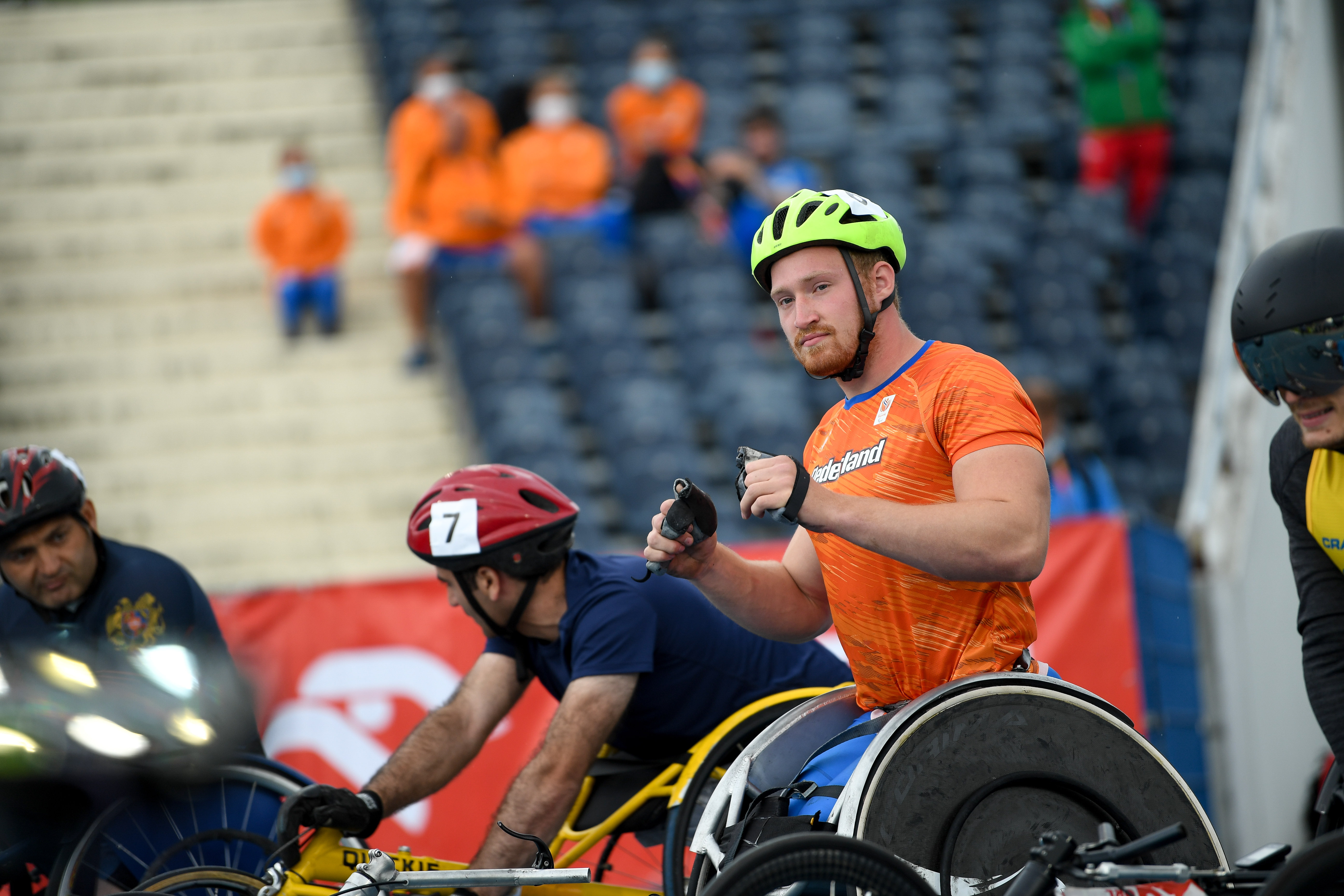 Nadat ze zich eerder vandaag wisten te kwalificeren, maakten Kenny van Weeghel en Rens van de Waterlaat hun opwachting in de finale van de 100 meter in de klasse T54. In een spannende race streden zowel van Weeghel als van de Waterlaat mee om de medailles. Uiteindelijk was het van Weeghel die na een goed eerste stuk net voldoende overhield voor de zilveren medaille in een tijd van 14,33 seconden. Voor van Weeghel is dit zijn zeventiende EK medaille: ‘Dit was voor nu het hoogst haalbare. Ik had een goede start, maar kwam op het einde tekort. Ik kijk met vertrouwen vooruit naar de komende races’, aldus van Weeghel.