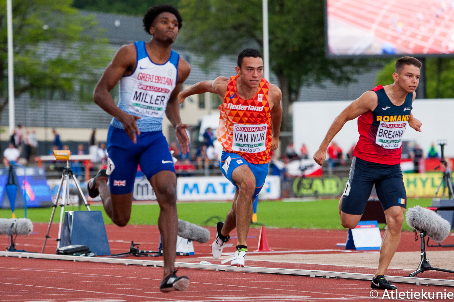 Gino van Wijk liep op dag 1 van de EK u20 al twee races. Van Wijk liep in de ochtendsessie naar 10.90 sec. op de 100 meter en wist zich daarmee te kwalificeren voor de halve finale later die dag. Om half 6 liep van Wijk zijn tweede race, hierin wist hij een tijd van 10.67 sec. neer te zetten. Helaas bleek dat uiteindelijk niet genoeg voor de finale. Van Wijk eindigde met deze tijd op een 17de plek. "De komende tijd moet ik echt aan mijn start gaan werken. Maar, ik ben nog niet klaar hier, zondag loop ik nog de estafette met ons team," aldus van Wijk.