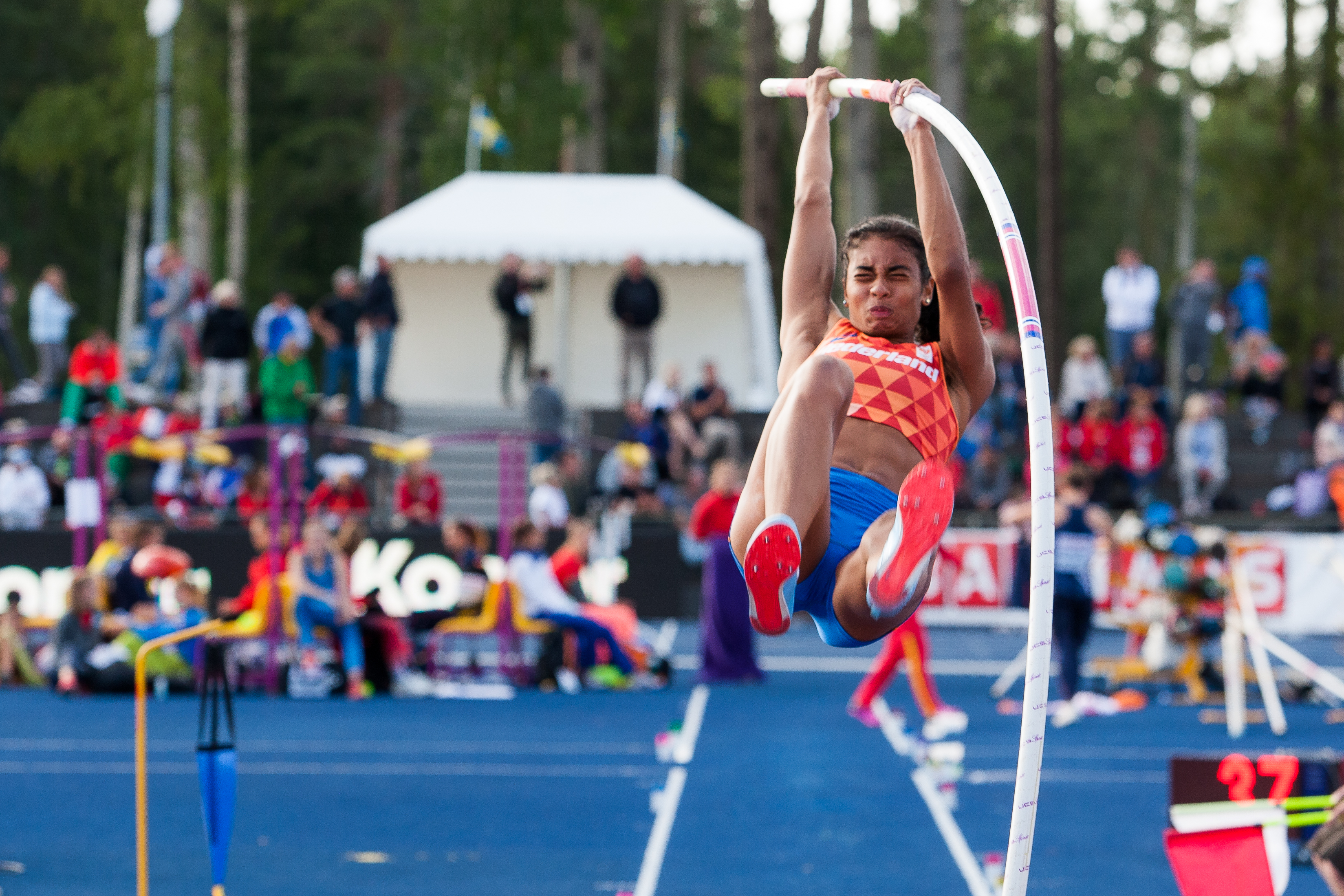 Een zure 4e plek was er op dag twee voor Emma Oosterwegel. Oosterwegel begon als zesde aan de tweede dag van haar zevenkamp. Een degelijke 5.86 meter met verspringen werd opgevolgd door een fantastische worp met de speer. Oosterwegel klom met een afstand van 52.04 meter naar plaats drie in de rankschikking. Tijdens de afsluitende 800 meter werd het alles of niets voor Oosterwegel. Met 2:12.68 liep ze nog een fantastisch pr tijdens het afsluitende onderdeel maar kwam helaas net tekort voor een medaille. De Belgische Hanne Maudens trok aan het langste eind en won het brons. "Ik kan mezelf niks verwijten. Ik was voor de race behoorlijk vermoeid door de afgelopen twee dagen, maar dat gold voor iedereen. Het ging vanaf het begin erg hard en ik heb er alles uit proberen te halen. Ik kan niet ontevreden zijn met deze twee dagen, zeker gezien de met momenten zware omstandigheden"