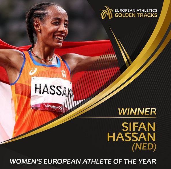 Hassan werd door European Athletics genomineerd vanwege haar ijzersterke prestaties tijdens de Olympische Spelen. Ze schreef geschiedenis door op de Olympische Spelen in Tokio een medaille te pakken op drie individuele onderdelen: goud op de 10.000 meter, goud op de 5000 meter en brons op de 1500 meter. Sinds 1988 lukte het niemand dat te bewerkstelligen.