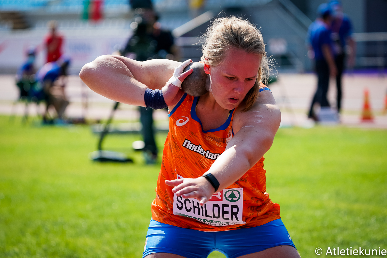 Nog even terug naar Jorinde van Klinken. Ze won goud dankzij een worp met de discus van 63.02 meter, bijna zes meter verder dan haar naaste belager Helena Leveelahti uit Finland. In de 24-jarige historie van het EK onder 23 wierpen maar twee vrouwen ooit nog verder dan de atlete uit Assen: de Duitse Shanice Craft in 2015 (63.83 in 2015) en de Oekraïnse Kateryna Karsak (64.40 in 2007). Jorinde bleef in Tallinn wel ruim onder haar persoonlijk record van 70.22 meter die ze op 22 mei in het Amerikaanse Tucson wierp.
