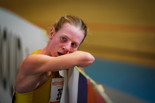 Elsbeth Ciesluk won de 3000 meter in de categorie V35. Na de finish genoot ze van een welverdiend moment van rust.