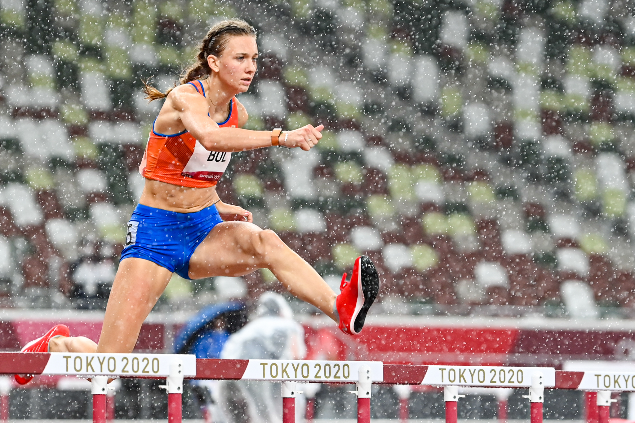 Op de vraag van NOS-verslaggever Jeroen Stekelenburg of Femke Bol zich nog ergens door van de wijs laat brengen, was het antwoord: “De regen is even anders”. Het regende namelijk pijpestelen in het olympisch stadion in Tokio. Maar zelfs een Japanse stortbui kon Bol er niet van weerhouden om zich te kwalificeren voor de finale van de 400 meter horden. Alsof ze nooit anders gedaan heeft, liep de pas 21-jarige Bol met overtuiging naar de winst in haar halve finale in een tijd van 53.91 seconden. Goed voor rechtstreekse kwalificatie naar de finale die donderdagnacht om 4:30 uur Nederlandse tijd op het programma staat.
