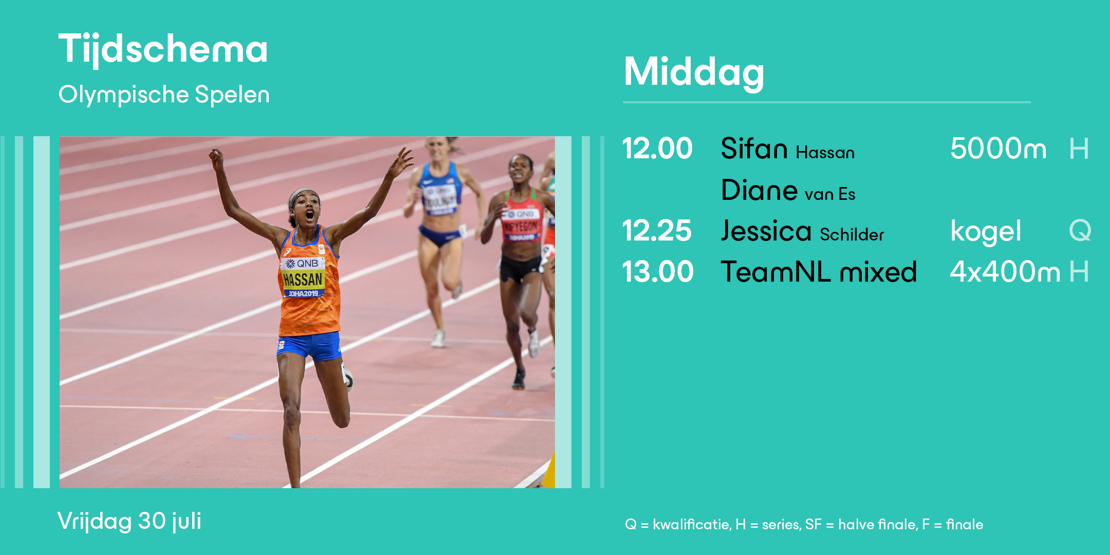 Vanaf 12 uur vanmiddag komen er meer TeamNL atleten in actie. Hieronder het Nederlandse tijdschema. Klik hier voor meer informatie over TeamNL op de Olympische Spelen.