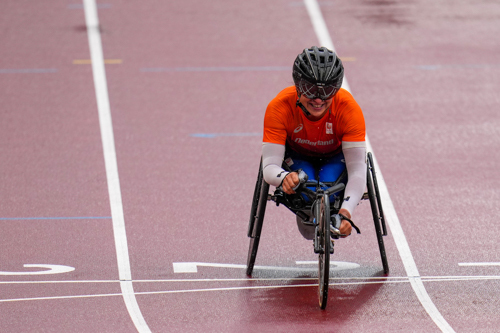 Nadat ze eerder al in actie kwam op de 1500 en de 5000 meter stond Nikita den Boer vannacht aan de start van haar favoriete onderdeel, de marathon (T54). Met een temperatuur van rond de 20 graden celcius en regenbuien was de verwachte warmte geen spelbreker tijdens deze race. Het Olympisch Stadion in Tokio werd al omgebouwd in aanloop naar de sluitingsceremonie, maar was nog wel het decor voor de start van de marathon. Na een kleine twee ronden op de atletiekbaan verlieten de wheelers het stadion om vervolgens ruim 40 kilometer door Tokio af te leggen. De laatste vijfhonderd meter werd weer verreden in het stadion.