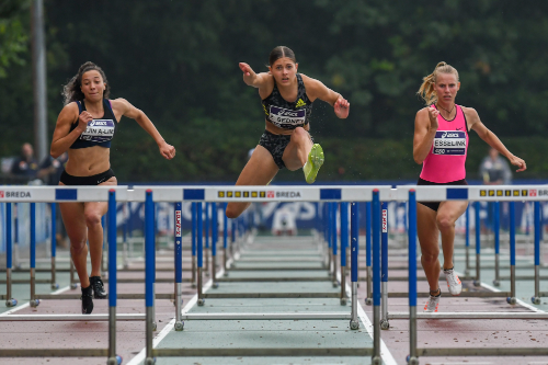 Ook een mooi affiche bij de dames: Nadine Visser tegen Zoë Sedney . Vrouwen die allebei niet misstaan tussen de wereldtop. Sterker nog, Zoë Sedney liep indoor de WK-finale en Nadine Visser werd in Tokio vijfde. Nadine heeft het eerste gedeelte van het seizoen gemist door een hamstringblessure, maar lijkt op tijd fit voor de NK, WK en EK. Zoë moet zich nog plaatsen voor de WK (limiet is 12,84 sec.), maar plaatsen op basis van de World Ranking is ook een mogelijkheid. Extra punten als Nederlands kampioen kan ze dus goed gebruiken.