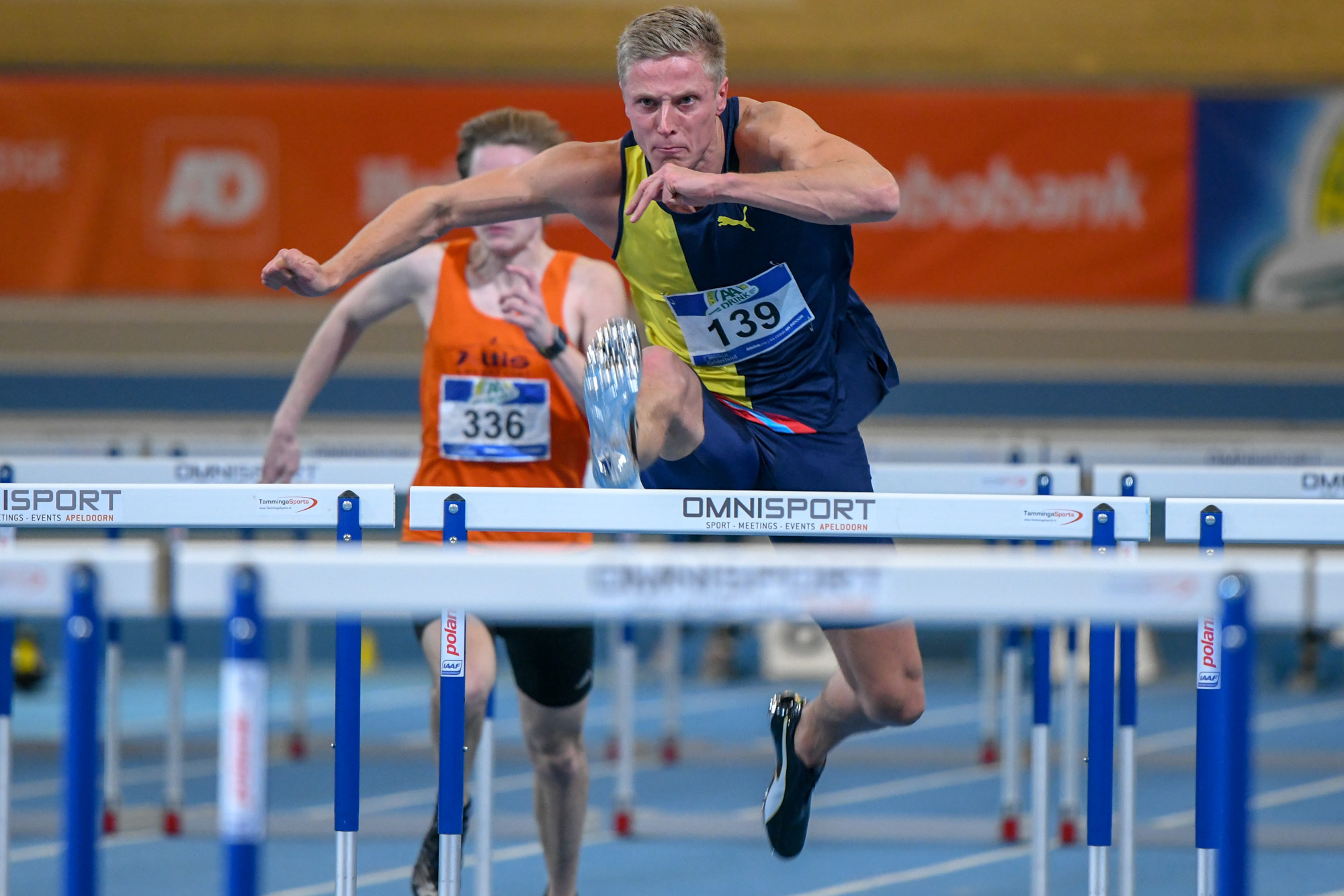 Strijd tussen Phanos atleten op de 60 meter horden mannen