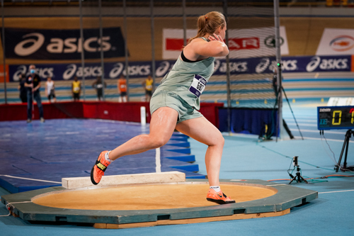 Jessica Schilder tijdens haar stoot van 19.72 meter