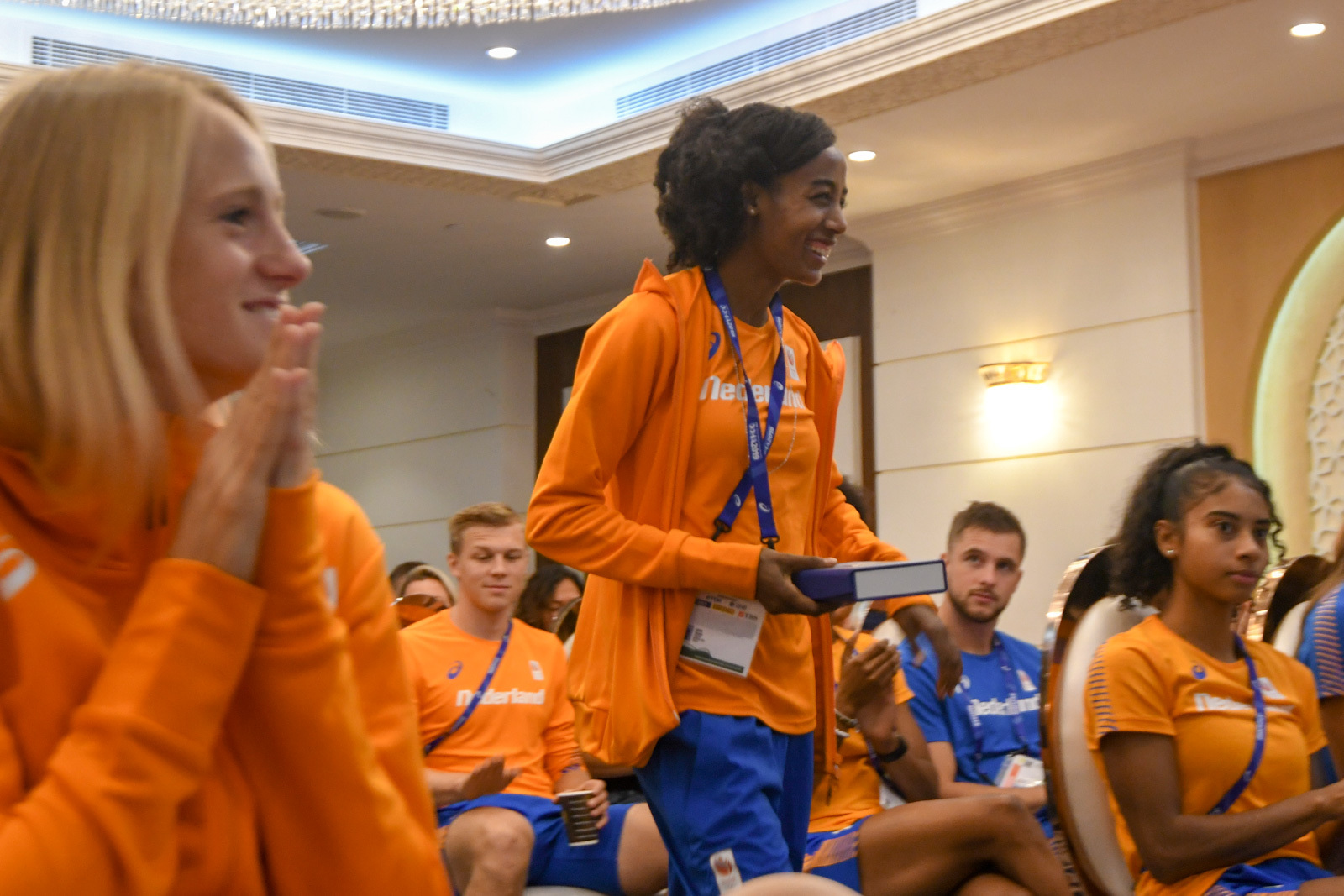 Vandaag was ook de dag dat Sifan Hassan gehuldigd werd door het Nederlandse team voor haar gouden medaille op de 10.000 meter. Dit is de vierde gouden medaille ooit behaald door het Nederlandse team bij een WK Atletiek.